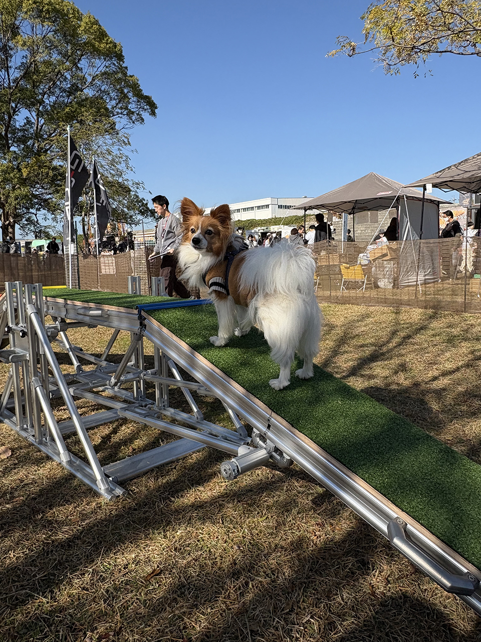 当日は、Aフレームやドッグウォークをドッグランスペースに設置し、多くのワンちゃんにご利用いただくことができました。