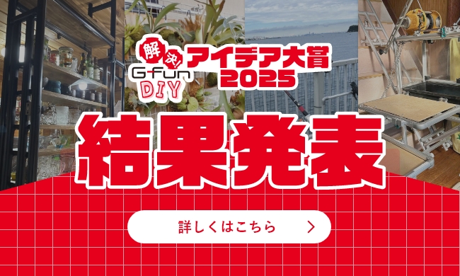 ■検索結果 新しい順古い順 コンテンツ: 新着ニュース、製品情報、DIY製作例 配信日: 2022年01月 から 2026年03月 検索結果: 58件 1 2 3 4 5 6 配信日:2026年01月30日 Vol.95アイデア大賞2025 結果発表!【G-Fun通信 Vol.95】 受賞5作品&全応募作品を一挙公開! 新着ニュース 唯一無二のアイデアが続々登場!受賞作品5点を速報ページでチェック 新着ニュース 「10th スペシャルクーポン」を配布中 … 詳しく見る 配信日:2025年12月19日 Vol.942026年大ヒット予測の作品特集【G-Fun通信 Vol.94】 10%OFFクーポンを使ってネクストヒット作品をお得にチャレンジ! DIY製作例 2026年次くる作品はコレだ!10thスペシャルクーポンを使ってチャレンジしよう 新着ニュース 「10th スペシャルクーポン」を配布中 … 詳しく見る 配信日:2025年11月28日 Vol.93車内のカスタムはこれ1本。車種別特集【G-Fun通信 Vol.93】 穴あけ不要!車内空間が劇的に変わるサイドバーをご用意しました。 DIY製作例 最も手軽な車内カスタム、サイドバー特集 新着ニュース 「10th スペシャルクーポン」を配布中 … 詳しく見る 配信日:2025年10月31日 Vol.92スポーツDIY特集【G-Fun通信 Vol.92】 サイクリングや釣りなど、アクティブに秋を楽しむDIY事例をご紹介します。 DIY製作例 魅せる収納や、スポーツの本格トレーニングに使えるアイデアをご紹介 新着ニュース アイデア大賞2025ご応募はこちら … 詳しく見る 配信日:2025年09月26日 Vol.91<10%OFF>10THスペシャルクーポンプレゼント【G-Fun通信 Vol.91】 G-Fun開始から10年。感謝を込めてG-Funオンラインストアで使える10%OFFクーポンをプレゼント 新着ニュース ありがとう!10%OFFクーポンをもれなくプレゼント 新着ニュース アイデア大賞2025ご応募はこちら … 詳しく見る 配信日:2025年08月29日 Vol.90可動パーツの活用事例集【G-Fun通信 Vol.90】 パーツの工夫でDIYが進化。注目の可動ギミックを使った事例特集 DIY製作例 開閉、スライド、折りたたみの3つの機能が光るDIY 新着ニュース お知らせ … 詳しく見る 配信日:2025年08月08日 Vol.89親子で工作体験「ミニチュアキット」【G-Fun通信 Vol.89】 教育現場でも活用できるG-Funの知育工作キット。この夏は親子でモノづくりを楽しみませんか? 新着ニュース 遊んで学ぶ、本格モノづくり!親子で心に残る体験を 新着ニュース お知らせ … 詳しく見る 配信日:2025年07月28日 Vol.88本日開始!アイデア大賞2025【G-Fun通信 Vol.88】 全800件のご応募作品も一気に大公開。アイデア満載の力作ばかりです! 新着ニュース アイデア大賞を今年も開催!応募作品一覧も大幅リニューアル 新着ニュース お知らせ … 詳しく見る 配信日:2025年07月11日 Vol.87『新製品』5アイテム登場【G-Fun通信 Vol.87】 マルチに使える打掛け錠やお手持ちの丸棒にも連結できるコネクタなどご紹介 製品情報 取り付けフレームはN・SどちらでもOK!マルチに使える打掛け錠キットが新登場 新着ニュース 無料の図面化サービスはこちら 詳しく見る 配信日:2025年06月27日 Vol.86簡単キャンプギア&アイデア大賞授賞式【G-Fun通信 Vol.86】 軽量で持ち運び楽々、レンチいらずで組み立て簡単な3つのキャンプギアとアイデア大賞授賞式を大公開 DIY製作例 間もなくキャンプシーズン到来!G-Funで作る、お役立ちアイテム3選 新着ニュース ユニークなアイデアが光る、アイデア大賞2024の授賞式の様子を動画で公開 詳しく見る 1 2 3 4 5 6