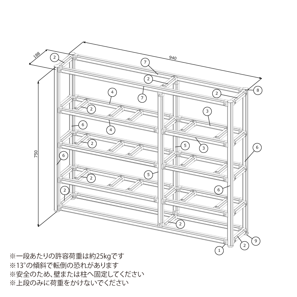 テクニカルサポートをご利用いただいたお客さまのアイデアです。重さごとに段分け収納ができるボウリングボール用の3段ラック。ボールを固定するフレームを設けることで転がりを抑え、安定した保管が可能です。