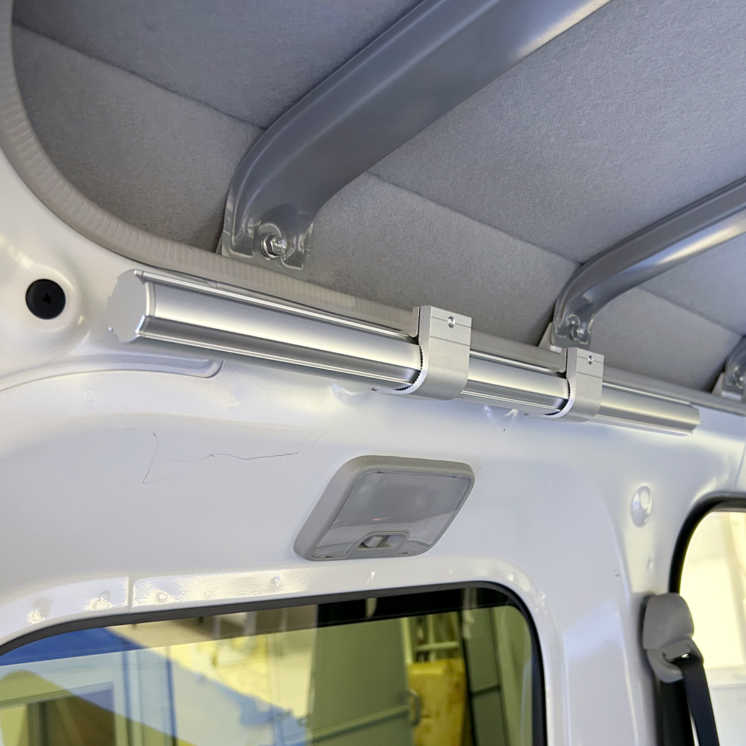 ハイゼットカーゴ専用車載サイドバーキットです。車内でG-Fun製品をしっかり固定する留め具としてお使いいただけます。サイドバーから天井収納や小物掛けなどに派生させることが可能で、車内DIYのベースとしても最適です。フレームカラーはブラックも選べます。