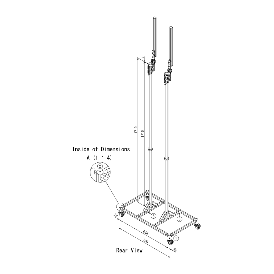 テクニカルサポートをご利用いただいたお客さまのアイデアです。高さや角度を自在に調整できるライトスタンド。キャスター付きで移動もスムーズです。